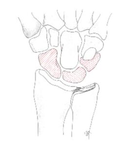 - Proximale rij resectie: het weghalen van de 1e rij handwortelbeenderen. Dit zorgt voor een voorspelbare afname van de pijn, echter er blijft een krachtsverlies en de pols verliest ongeveer 50% beweeglijkheid ten opzichte van een gezonde pols. Via een lengtesnee aan de rugzijde van de pols worden deze botjes weggehaald waardoor de 2e rij handwortelbeenderen met de onderarm een nieuw pols gewricht vormt.